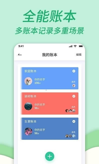 支持多账本:分账本记录公司账、生活账、装修、旅游、报销、生意、结婚等