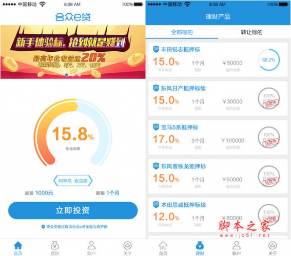 年化收益高达18%,高于50倍银行活期存款利息,秒杀各宝宝类理财产品,收益稳定,安全,最低50元起投!合众e贷,旨在为中小企业和个人打造一个规范,安全,诚信,专注汽车抵押的金融理财产品。
