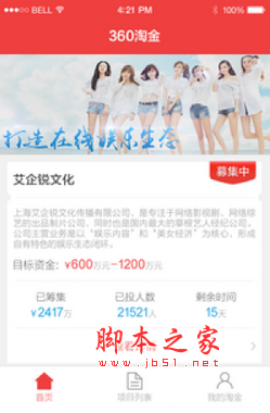 360淘金app,360旗下金融平台。目前艾企锐,轻+,唱吧KTV,Palantir,机械管家等项目均完成投资。我们提供私募股权,消费娱乐等板块,为您的资产提供超高增长的渠道!我们的用户热爱美食、购物、海淘、投资、理财、微店、美图秀秀、美拍、美柚、下厨房。欢迎大家到百度,360搜索,好搜去搜索了解我们的项目,也可以到百度音乐,QQ音乐,优酷视频,爱奇艺,乐视视频,搜狐视频去看我们艾企锐项目的视频,也欢迎大家到美团网、大众点评、百度、腾讯、qq、微信、淘宝、微博、淘宝、唯品会、陌陌、支付宝、贴吧上对我们的上线的唱吧KTV作出评价。还可以通过百度手机助手,360手机助手,应用宝去下载我们上线的项目app,如轻+,机械管家。还可以通过微信,QQ,微博和我们的工作人员进行互动并了解项目动态。