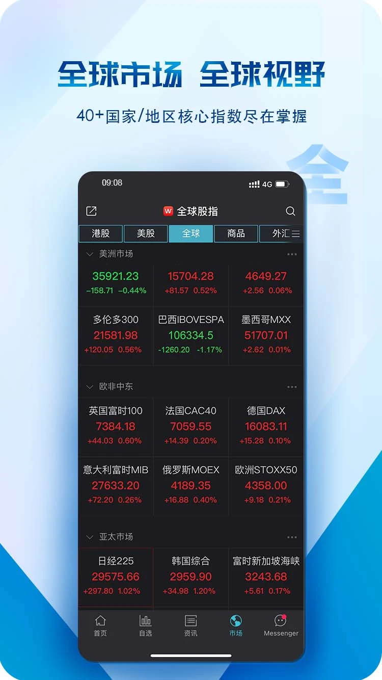 4、囊括全球指数,欧非中东等21大指数纵观全球行情,满足各种投资需求,是券商、基金等专业金融机构得心应手的研究工具。