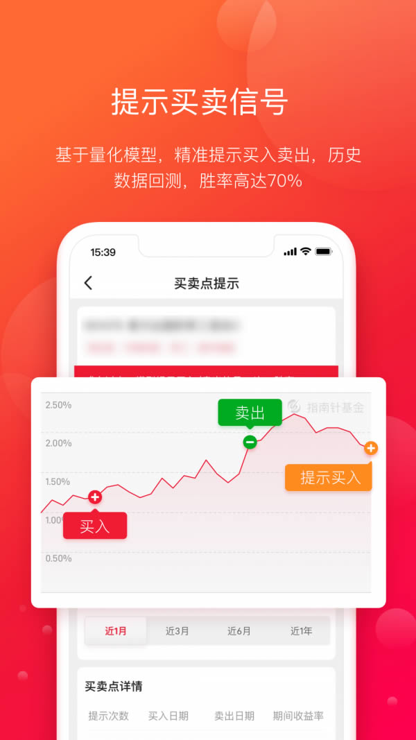 4.买卖点提示:基于量化模型,精准提示买入卖出;历史数据回测,胜率高达70%