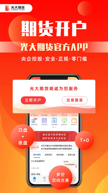 光大期货app是一款专业的手机期货投资平台,APP提供海量期货投资项目,支持手机期货投资、金融资讯推荐,欢迎广大投资者下载使用!