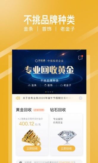 存金通官方APP是一款可以回收黄金的app,针对黄金可以有各种价格,软件支持直接大数据进行交易,并且还可以进行存储黄金,随时了解黄金的金额!黄金管家存金通主要通过互联网平台获取客户,存金通支持线上回收及到店服务,用户可以按距离、按评分等方式选择门店直接上门。目前存金通已与顺丰快递合作,如在运输过程中丢失将全价赔付。需要的朋友快快下载体验吧!